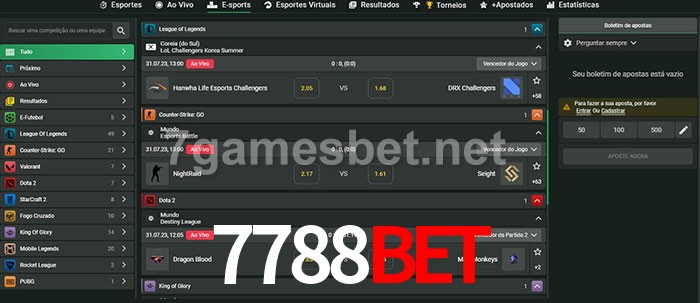 O 7788Bet oferece uma grande seleção de opções de apostas em e-sports com probabilidades competitivas